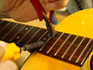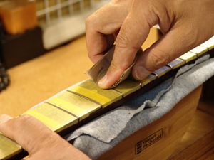 - 29.専用のヤスリを使ってフレット端を整形します。