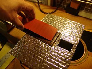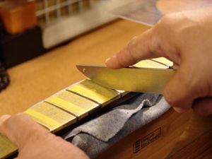 - 7.そのまま数分間置いた後、ナイフを差し込んでいきます。接着剤が熱で軟化しているのがわかります。