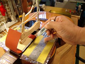 - 6.ヒーターに通電します。フィンガーボードの温度をモニタしながら徐々に温度を上げていきます。