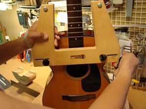 - 9.ネックは蒸気ではずします。まず専用のジグを取り付けます。