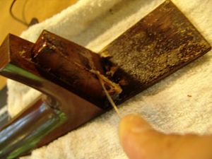 - 3. ナットを取り外したナット溝です。古い接着剤の跡が薄く残っています。