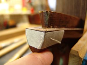 - 2.ローズウッド材からブリッジプレート・リペアのためのプラグを切り出します。