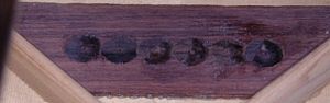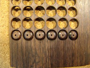 - 5.小穴があいたプラグです。まだ材に固定されています。