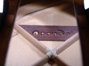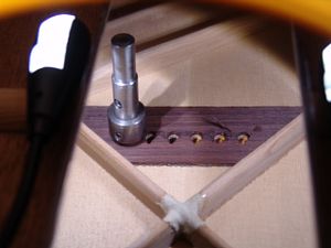- 24. 弦を張りました。エンドポールがプレートの上にしっかり固定されています。