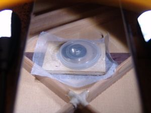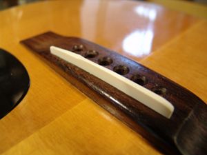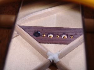 - 1.ブリッジにイントネーター、サウンドホールにチューナーを取り付けました。
