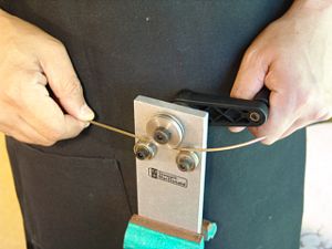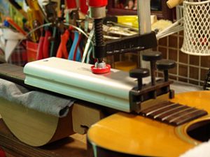 - 12.フレットベンダーでフレットにアールをつけていきます。