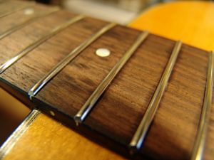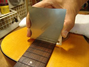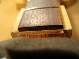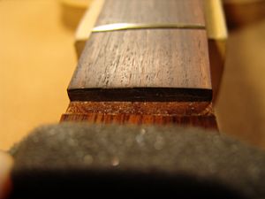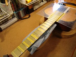 - 12.目視および指で触ってネック、フィンガーボードと段差のないことを確認しておきます。