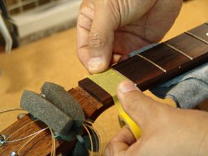 - 37.平らになったフレット山を専用のヤスリで丸くしていきます。