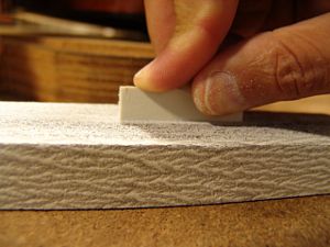 - 25.ネックとボディの間にサンドペーパー挟みます。