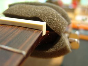 - 26.ナットと弦の接触面積と角度を最適化することによってギターの音色は大きく変わります。