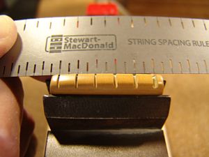 - 17.オリジナルナットから弦溝位置を読みとります。(1弦と6弦の位置で他の弦の位置が決まります)