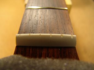 - 25.他の弦も同じ要領で調整しました。弦高調整後のナットです。