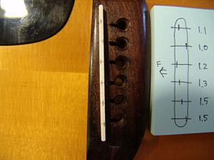 - 14.フィンガーボードの湾曲度(アール)を計測します。