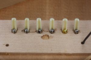 - 19.1,3,5弦のプラグ固着後、同じように2,4,6弦のプラグ接着を行います。