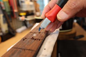 - 13.フレットの高さに合わせてケガキ線を入れます。