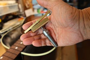 - 22.ストリングリフターで弦を待避させて、ナット溝を徐々に下げていきます。