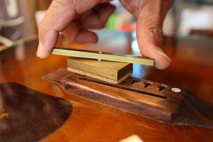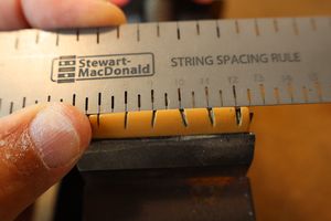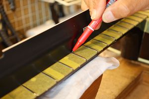 - 18.弦溝位置を新しいナットに書き込みます。
