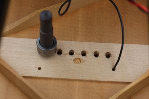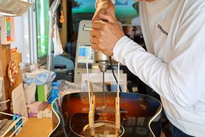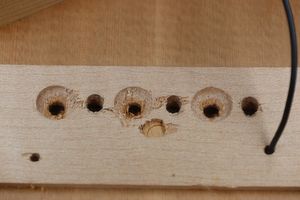 - 13.さらにミニルーターで弦の導出角度をつけていきます。