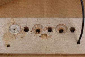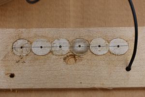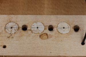 - 5.小穴があいたプラグです。まだ材に固定されています。