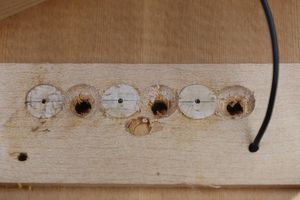 - 17.1,3,5弦のプラグ固定が終わりました。このとき木目方向を確認しておきます。
