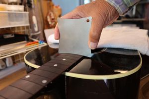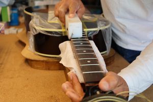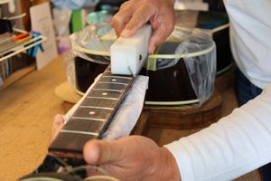 - 12.目視および指で触ってネック、フィンガーボードと段差のないことを確認しておきます。
