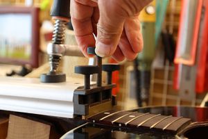 - 12.アールにあった先端ビットをジグのプレス部に固定します。