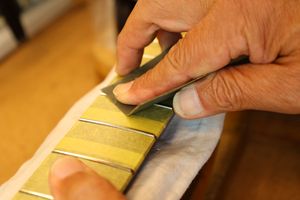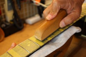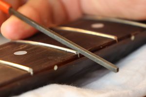 - 33.平らになったフレット山を専用のヤスリで丸くしていきます。