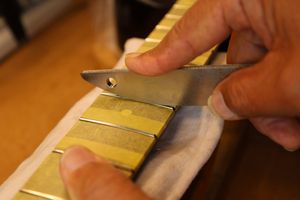 - 25.専用のヤスリを使ってフレット端を整形します。
