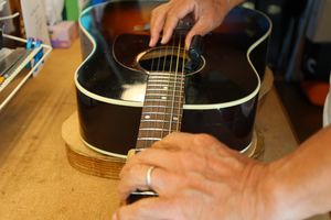 リペア後は仰るとおり、軽快な高音と箱鳴りの低音を奏でてくれるギターになり、試奏を楽しませていただきました。
