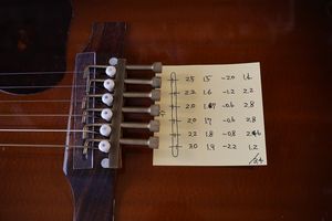 - 17.目標の弦溝位置を読みとります。(1弦と6弦の位置で他の弦の位置が決まります)