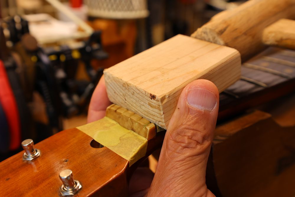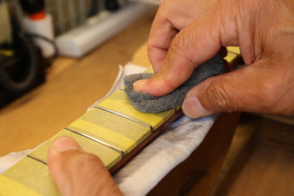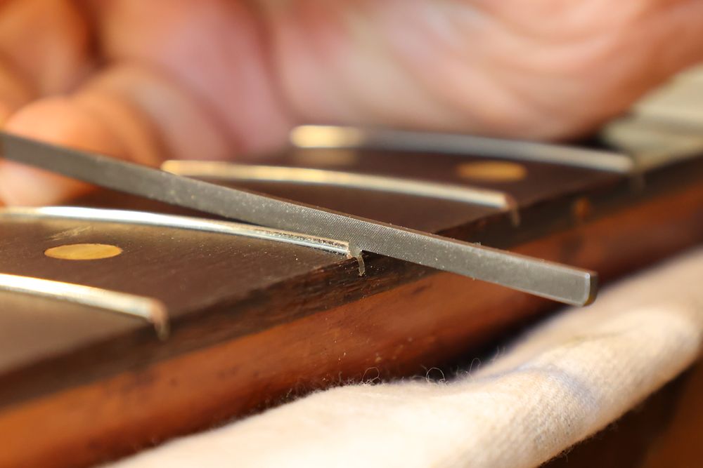 - 33.平らになったフレット山を専用のヤスリで丸くしていきます。