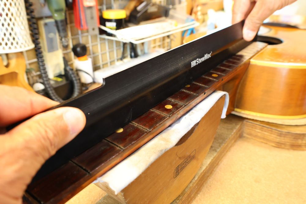 - 8.フィンガーボードの湾曲度(アール)を計測します。