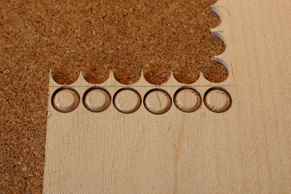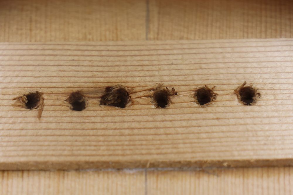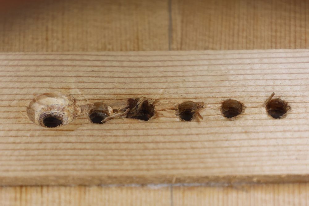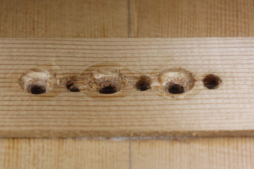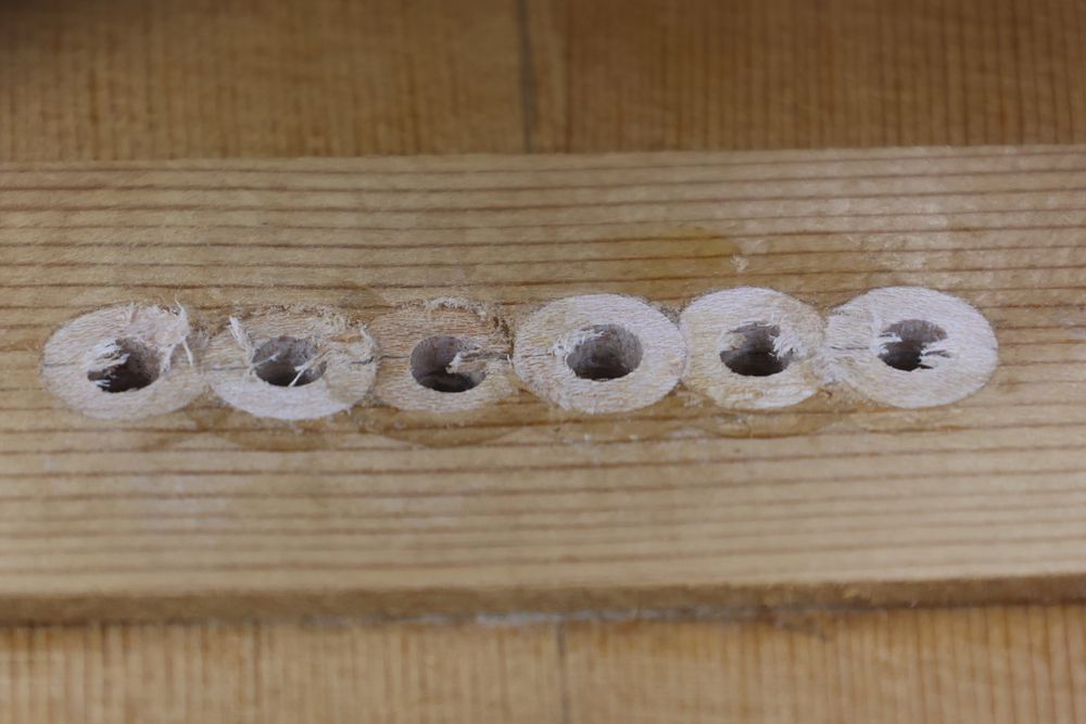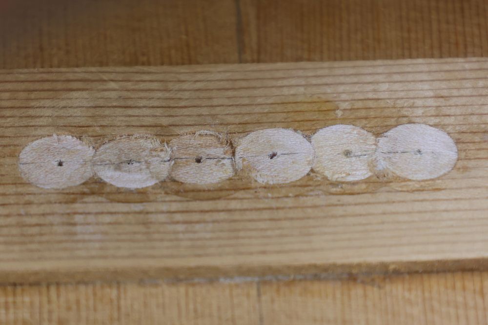 - 5.小穴があいたプラグです。まだ材に固定されています。