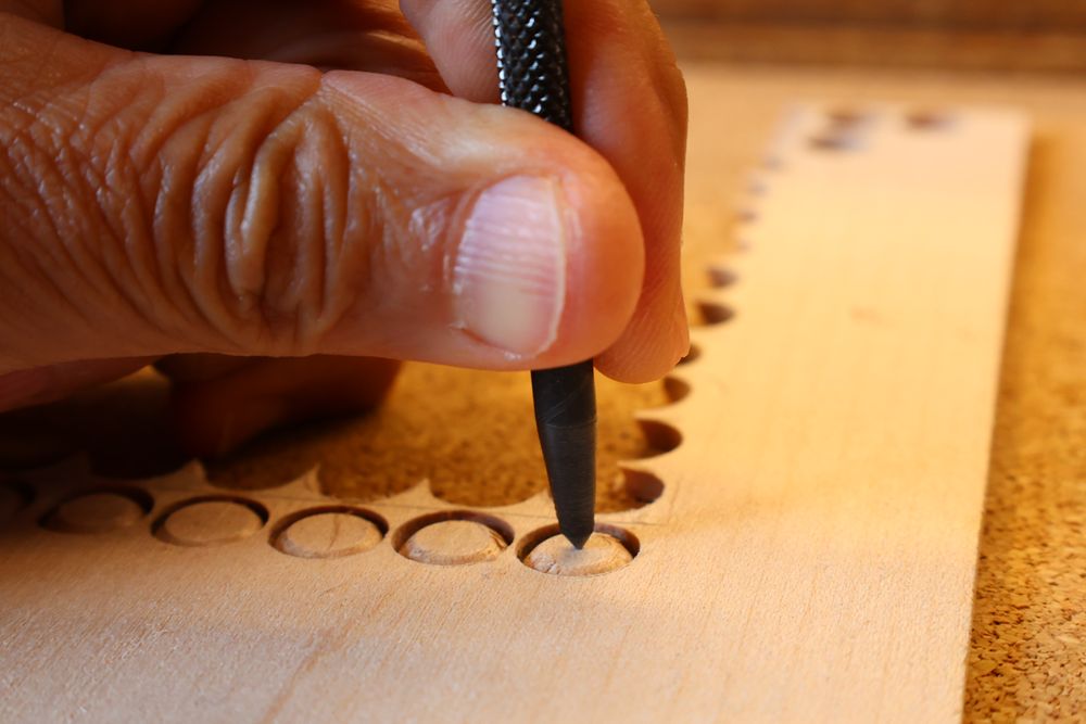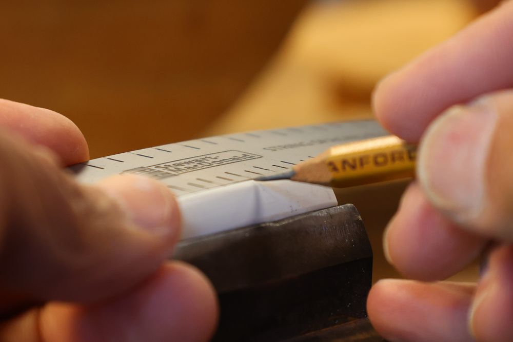 - 13.フレットの高さに合わせてケガキ線を入れます。