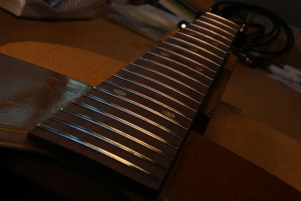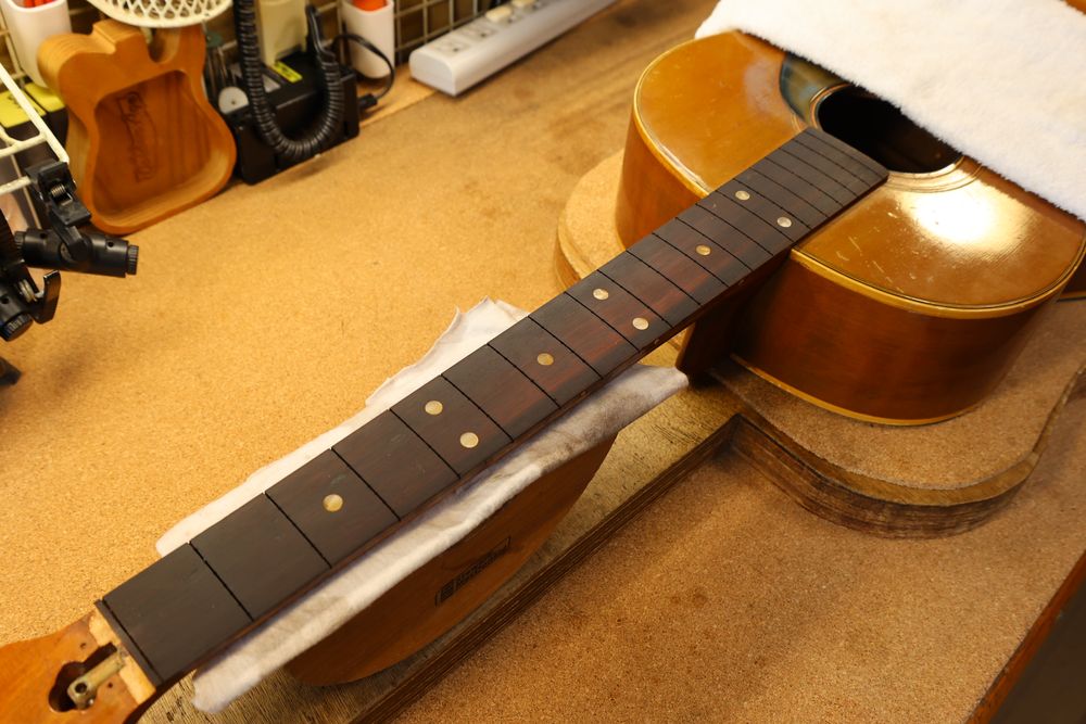サドル高の低さにも関わらず、リペア完了後のギターから流れ出る音色は低音域から高音域まで素晴らしいものでした。