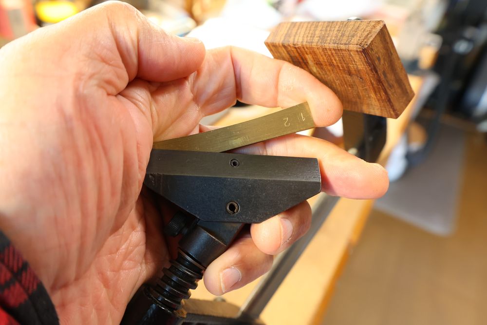 - 12.アールにあった先端ビットをジグのプレス部に固定します。