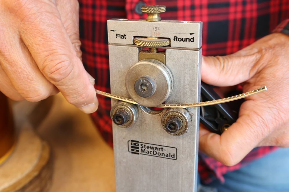 - 9.フレットベンダーでフレットにアールをつけていきます。