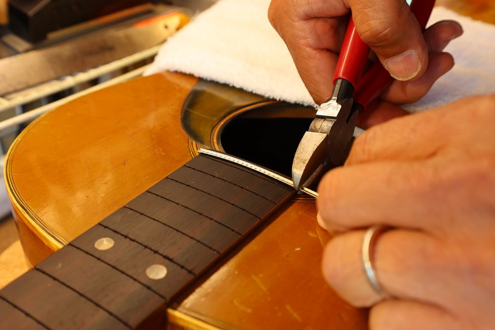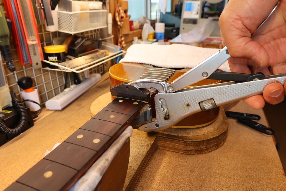 - 25.専用のヤスリを使ってフレット端を整形します。