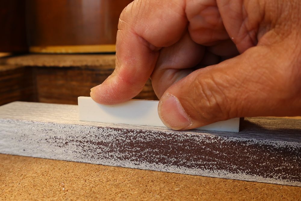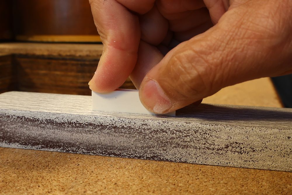 - 34.紙ヤスリ(#400)で粗研磨します。