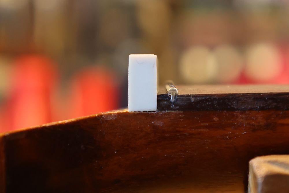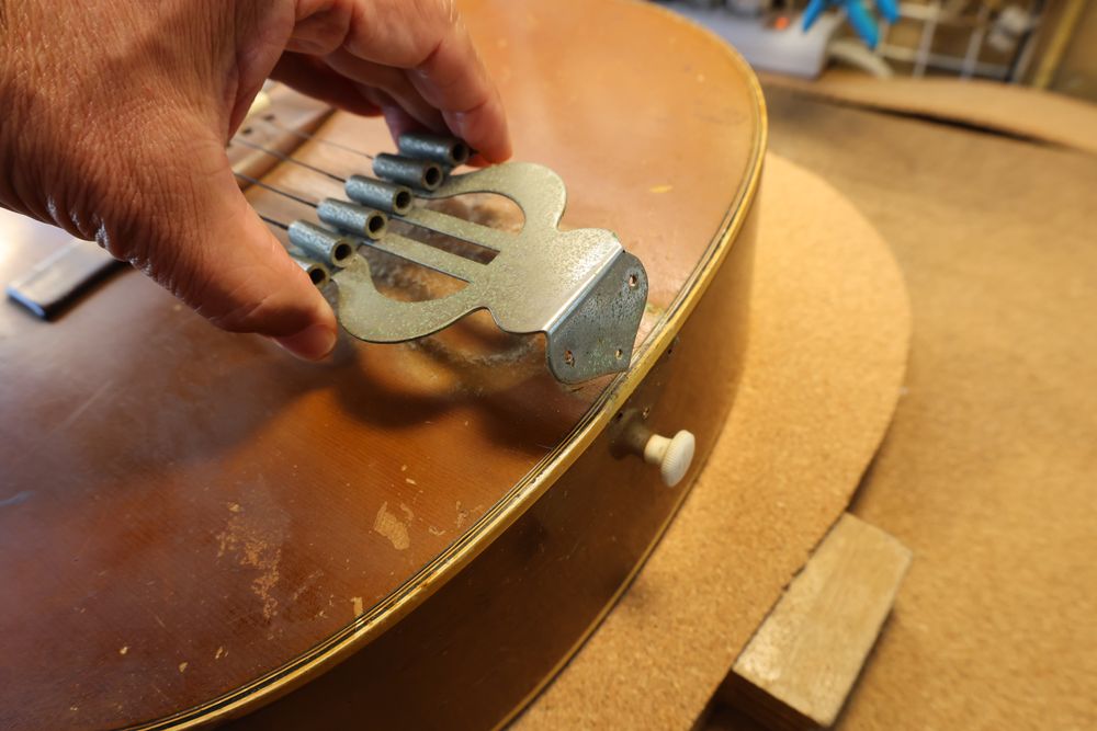 - 24.弦を張りました。エンドポールがプレートの上にしっかり固定されています。