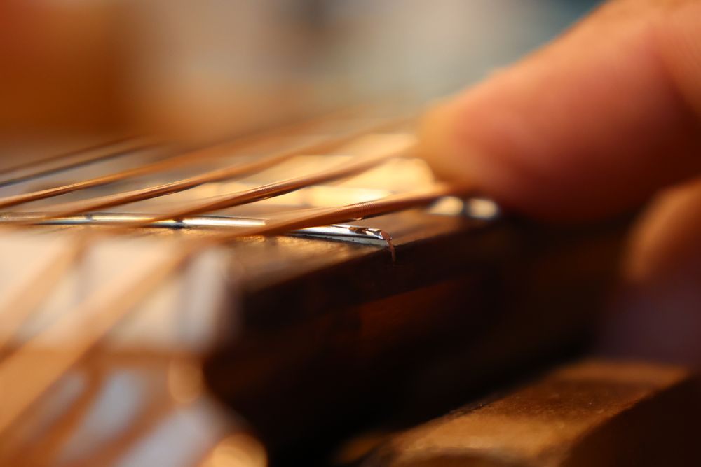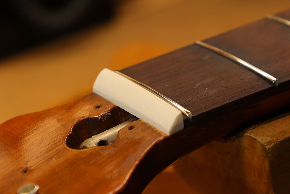 - 26.ナットと弦の接触面積と角度を最適化することによってギターの音色は大きく変わります。