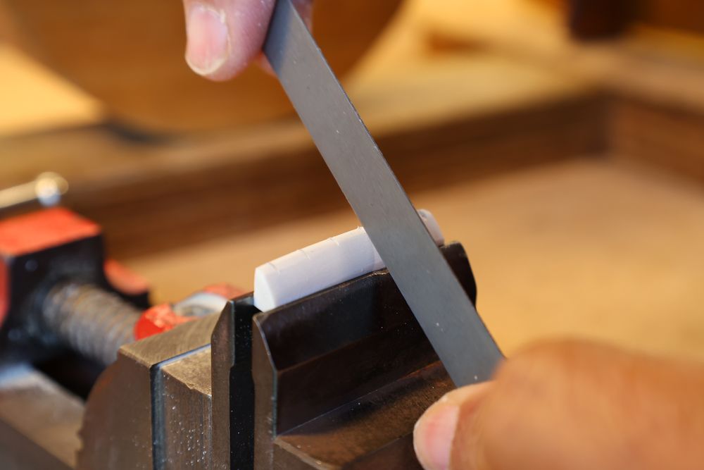 - 19.弦溝を専用のヤスリで彫り込んでいきます。