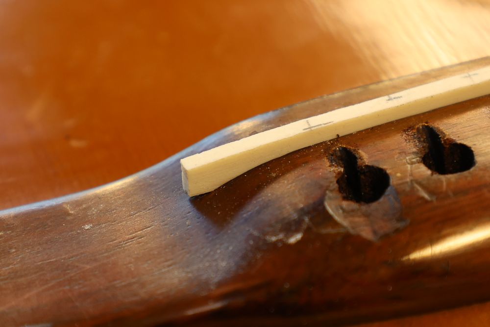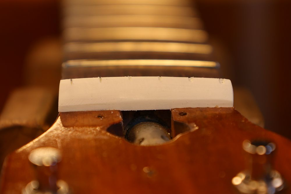 - 25.他の弦も同じ要領で調整しました。弦高調整後のナットです。