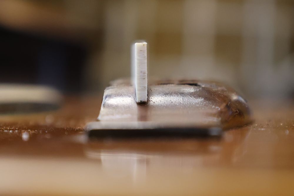 - 5.クリーニング完了したナット溝です。ナットが溝と直接触れることによってギターの音色の改善が期待できます。