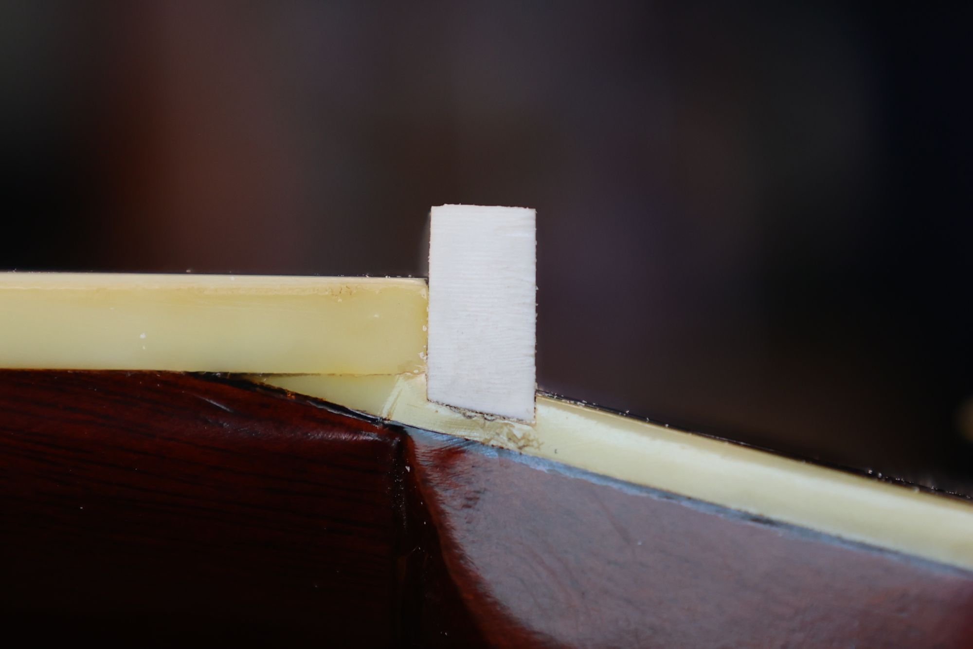- 12.目視および指で触ってネック、フィンガーボードと段差のないことを確認しておきます。