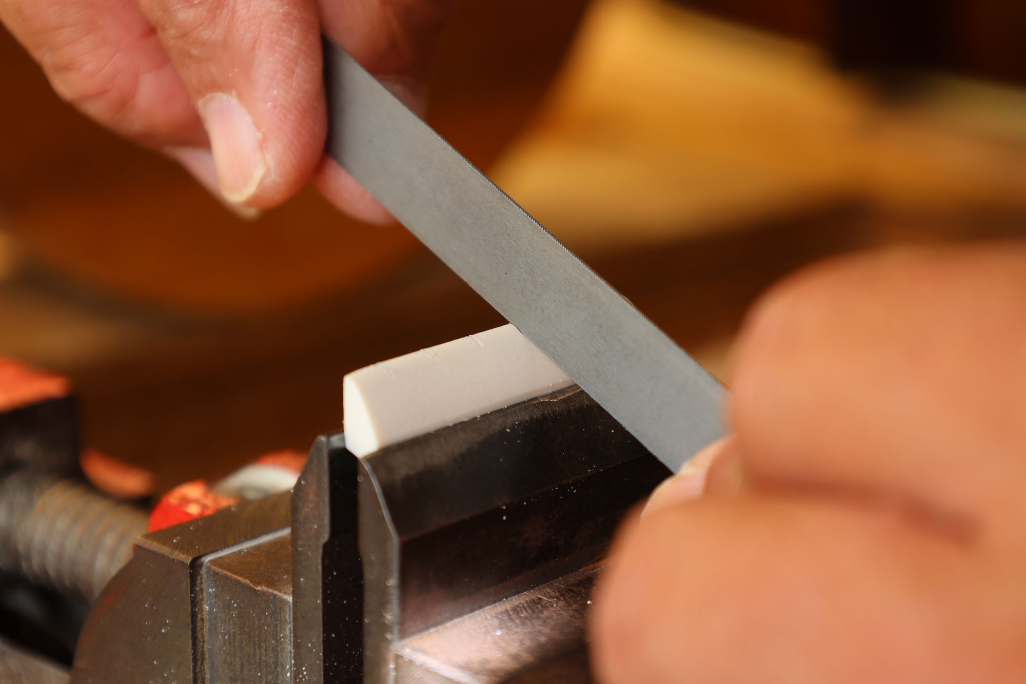 - 19.弦溝を専用のヤスリで彫り込んでいきます。