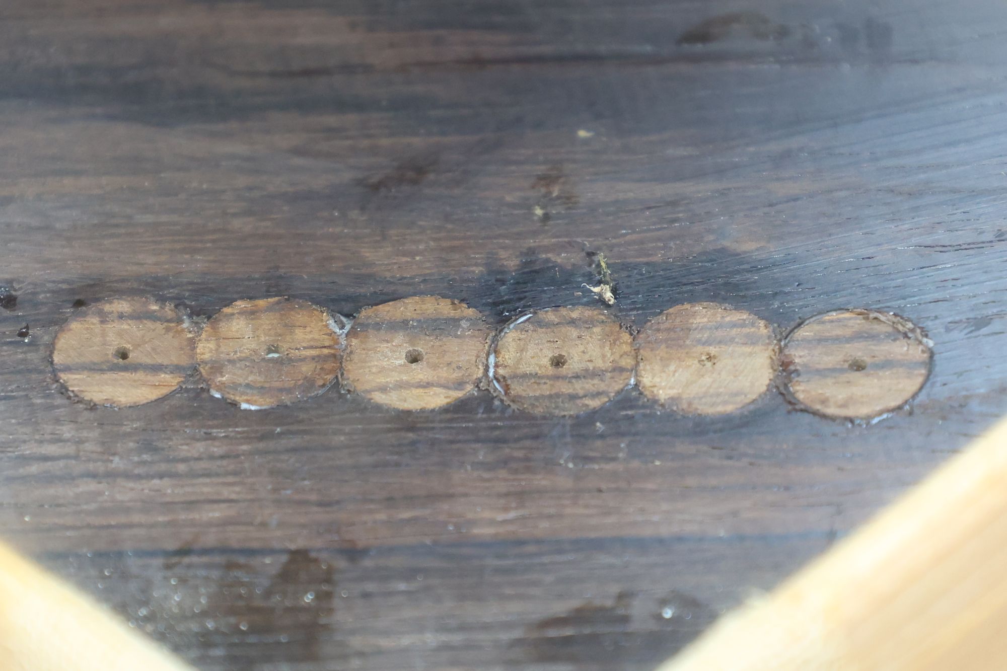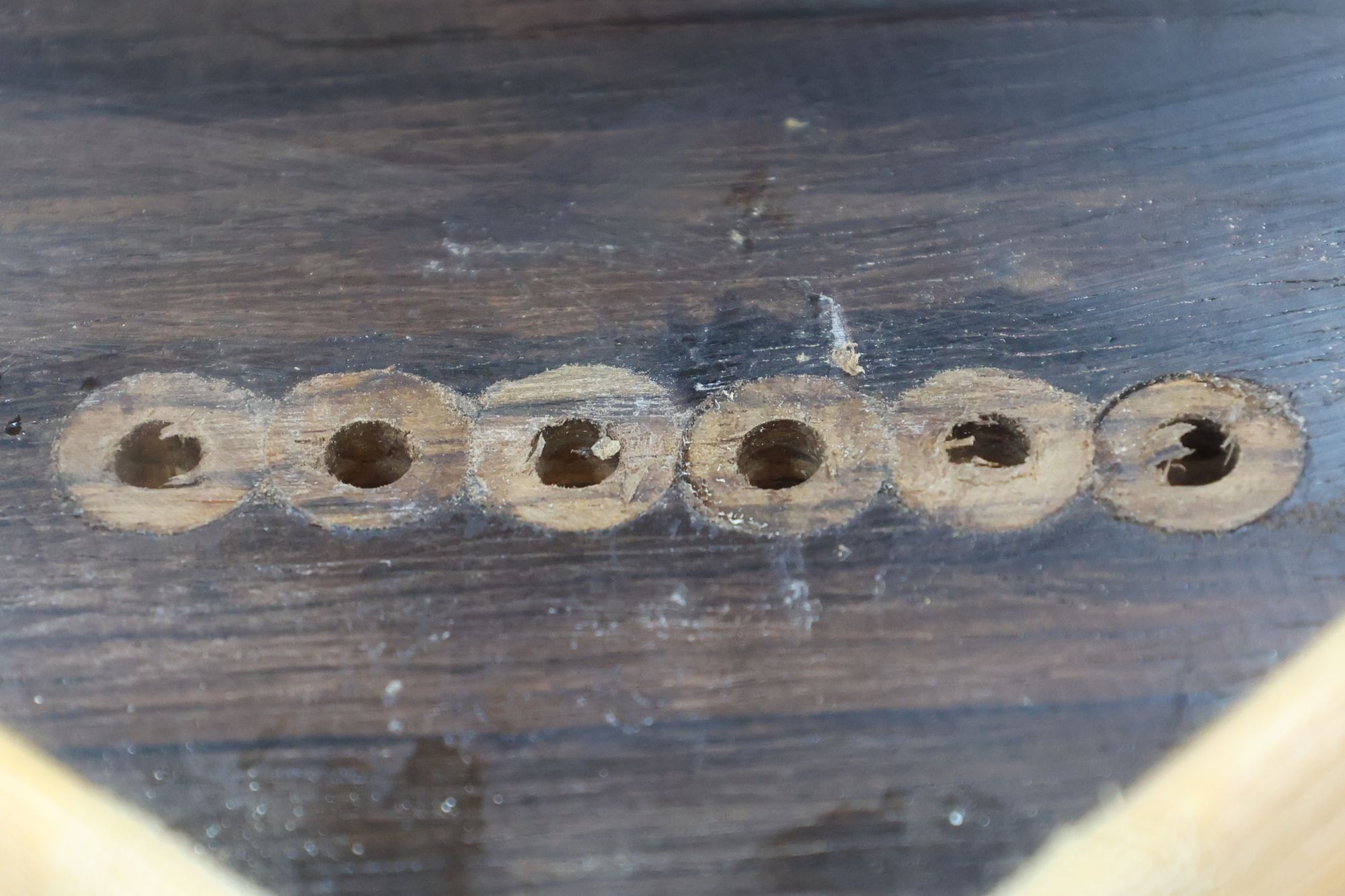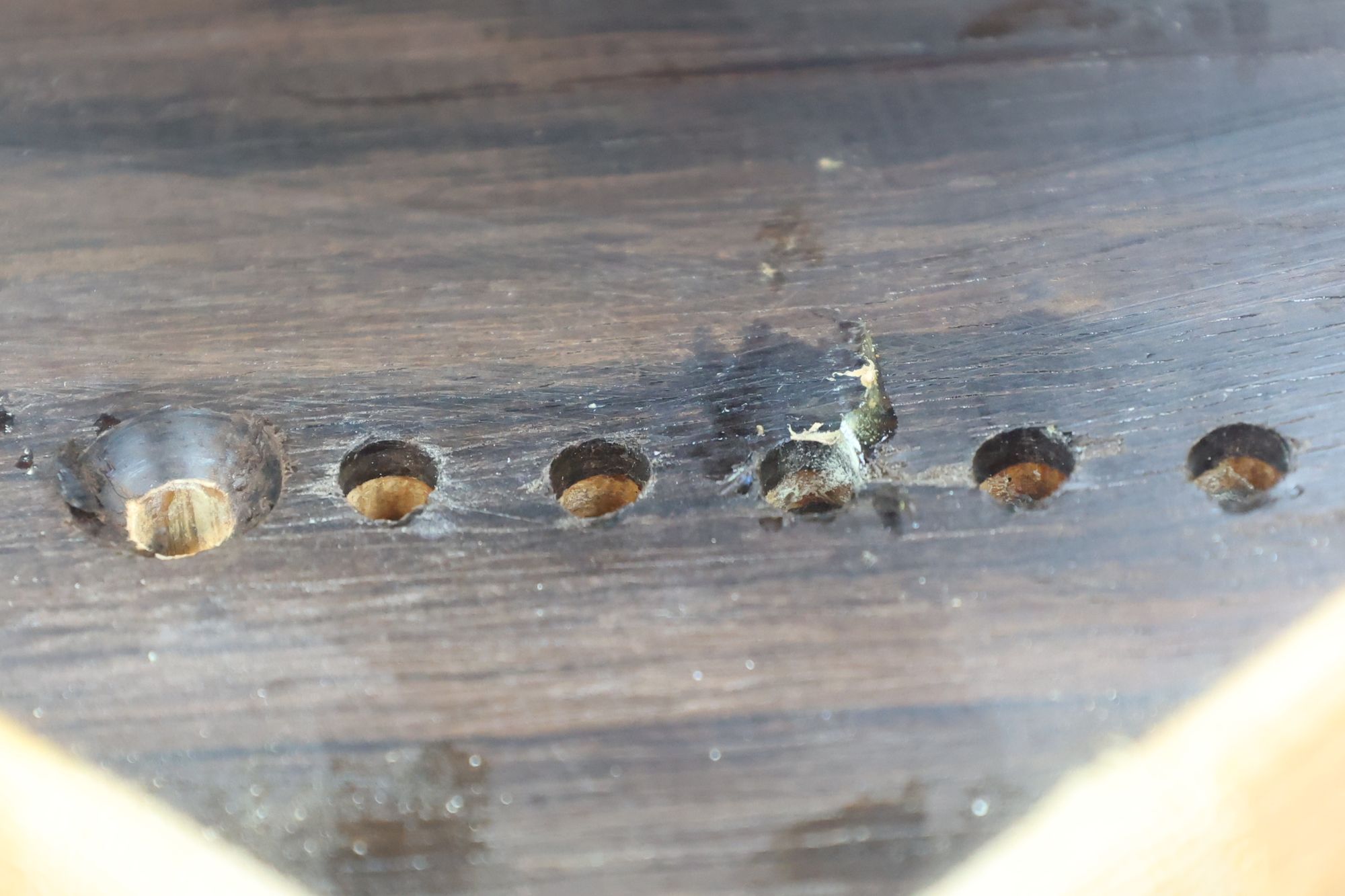 - 5.小穴があいたプラグです。まだ材に固定されています。