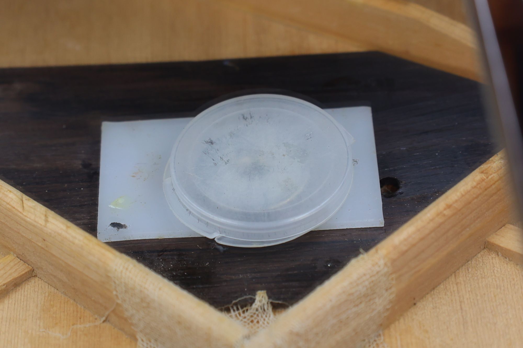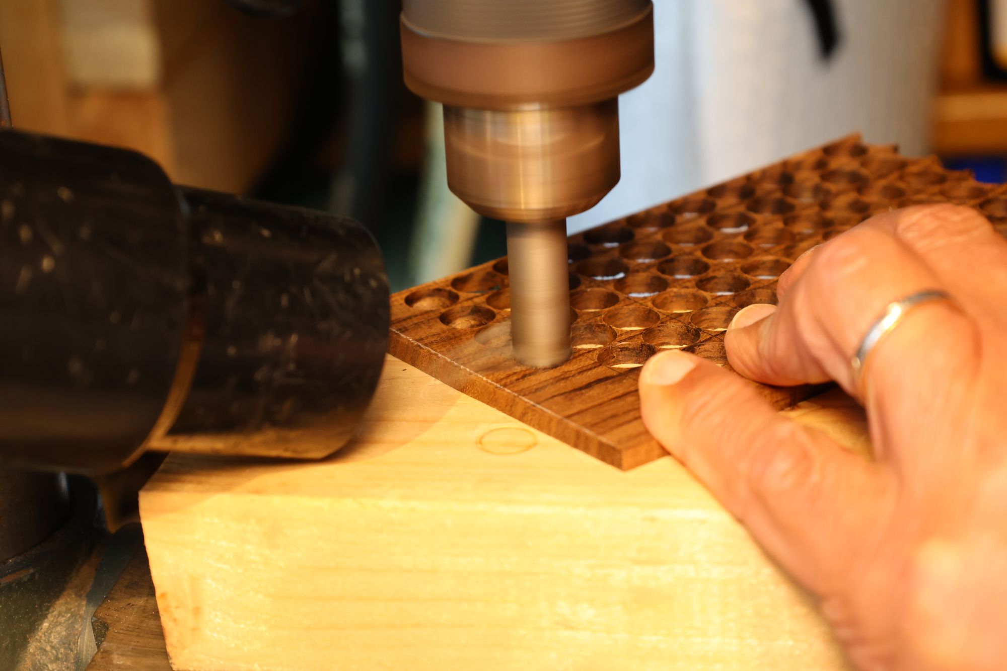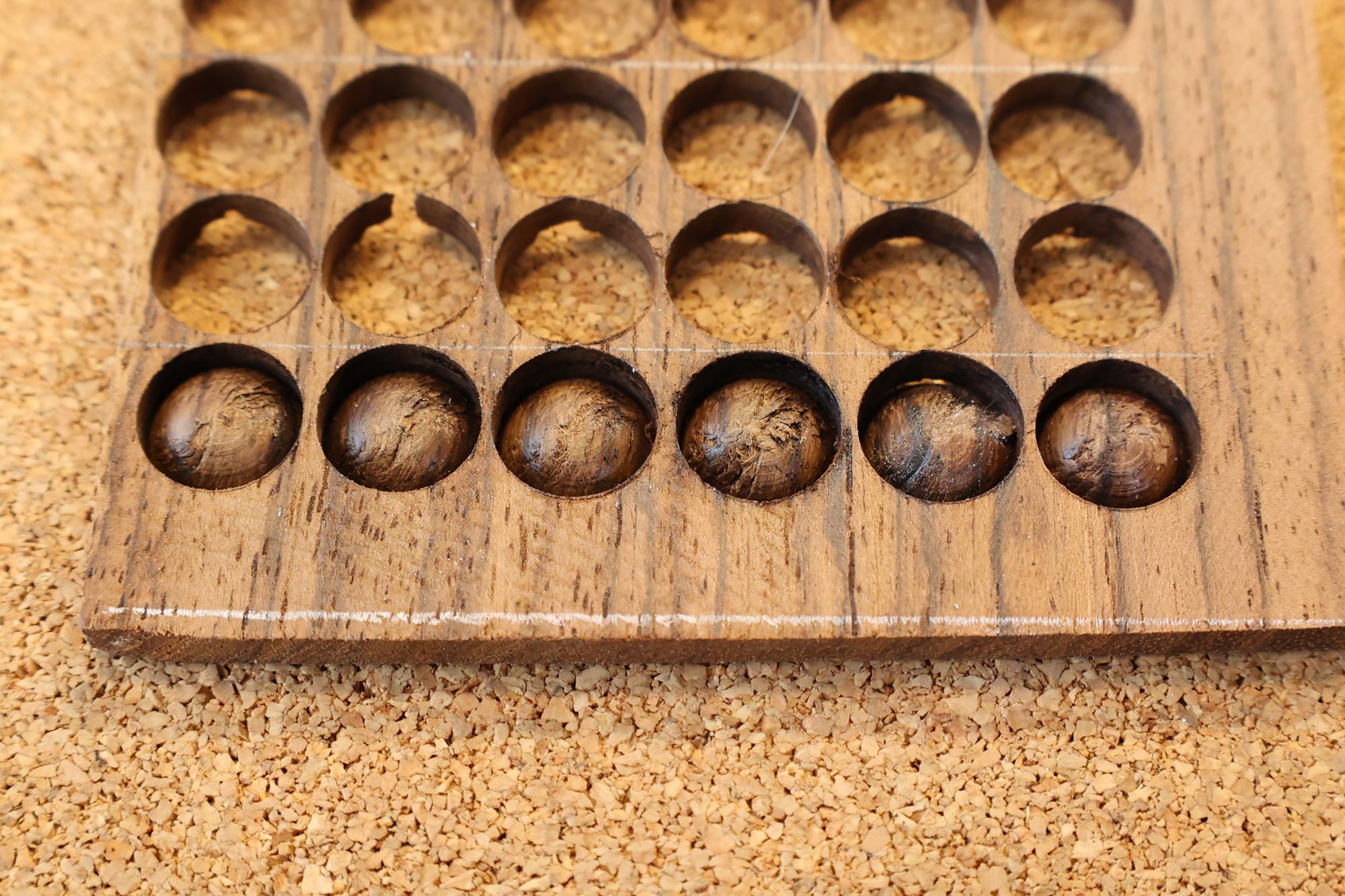 - 5.小穴があいたプラグです。まだ材に固定されています。