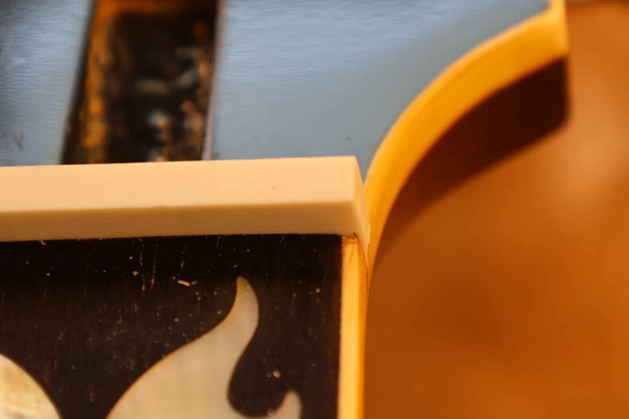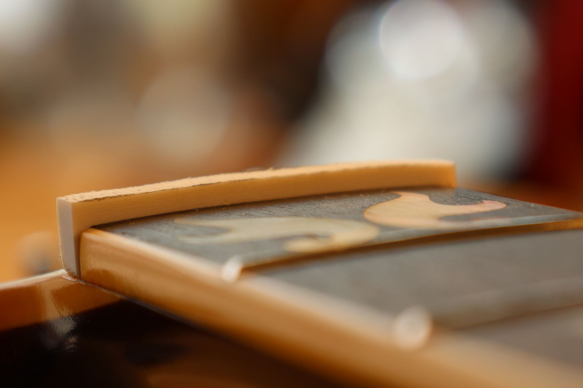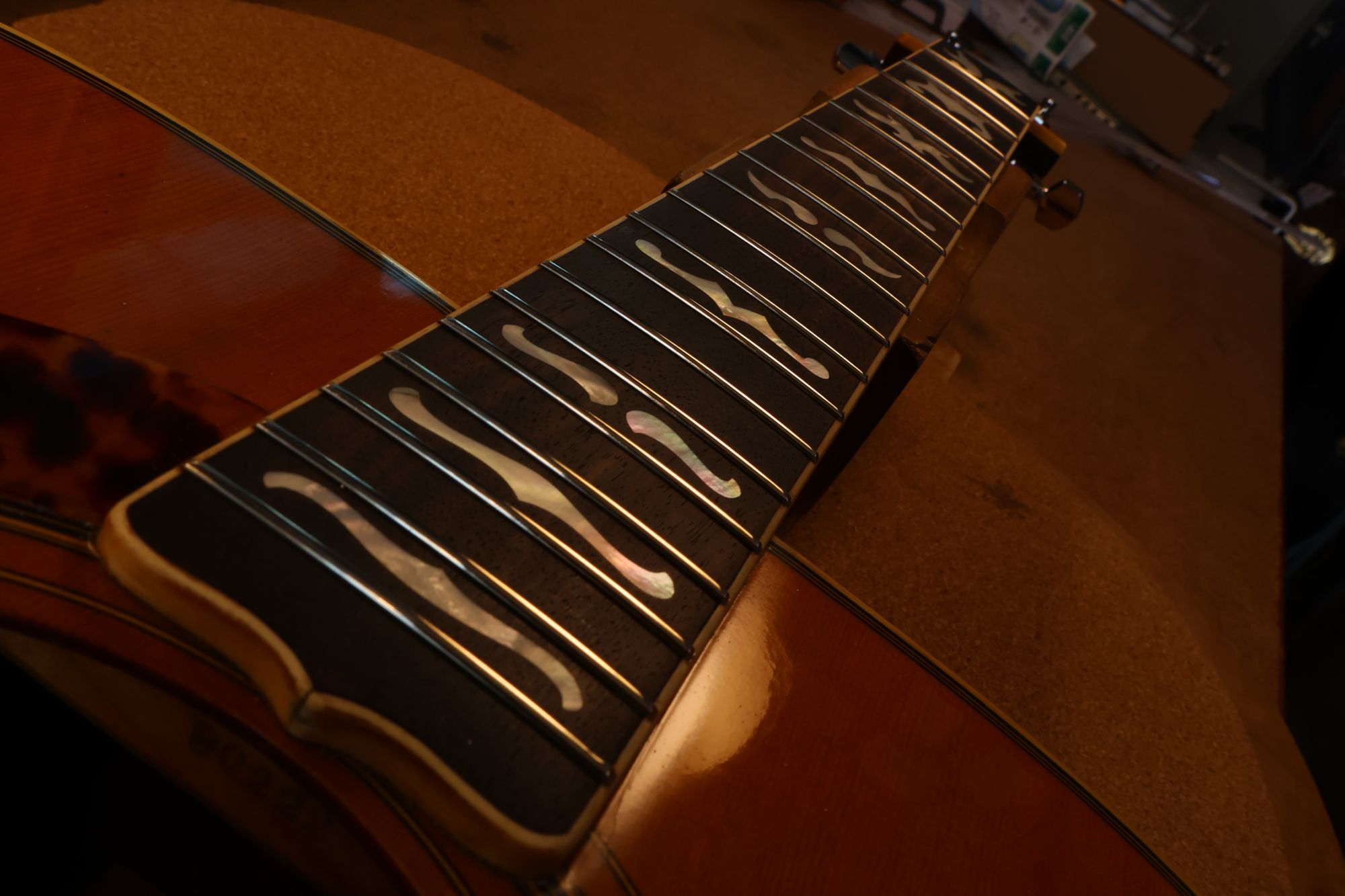- 12.目視および指で触ってネック、フィンガーボードと段差のないことを確認しておきます。