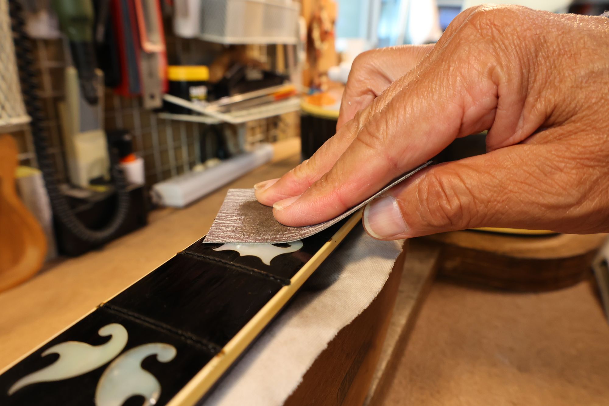 - 6.フィンガーボードをクリーニングします。